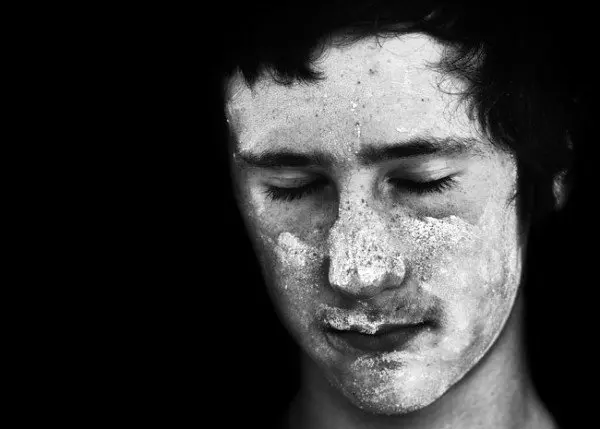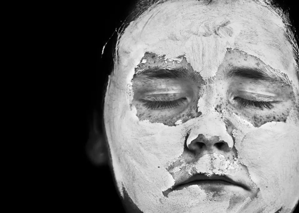 White faces loom up out of a dark ground, described by Orr as a void. On the surface these portraits are finely crafted, the skin of the masked face becomes one with the digital file to create a facial landscape. The materiality of the face and the photographic file are exposed for the viewer. Titling the series ‘vision’ Orr ventures into a ‘haptic visuality’ where “vision itself can be tactile, as though one were touching a film with one’s eyes”.[1]