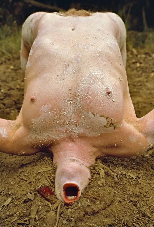 My performances are conceived through strong imagined images that I make manifest either for the camera directly or through a live event. I always try to do a separate shoot in the live context to maximize my direction and enable the photographers concentrated space. When all is said and done the final act is collaborative, not unlike a film and theatre director. The photographic and video documentation is the artwork. This is where I believe I differ from most other performance artists who have not necessarily worked with images in mind as the final art work. Their concentration is often in the conceptual nature of the action. My work covers both.