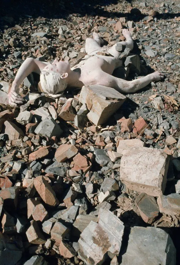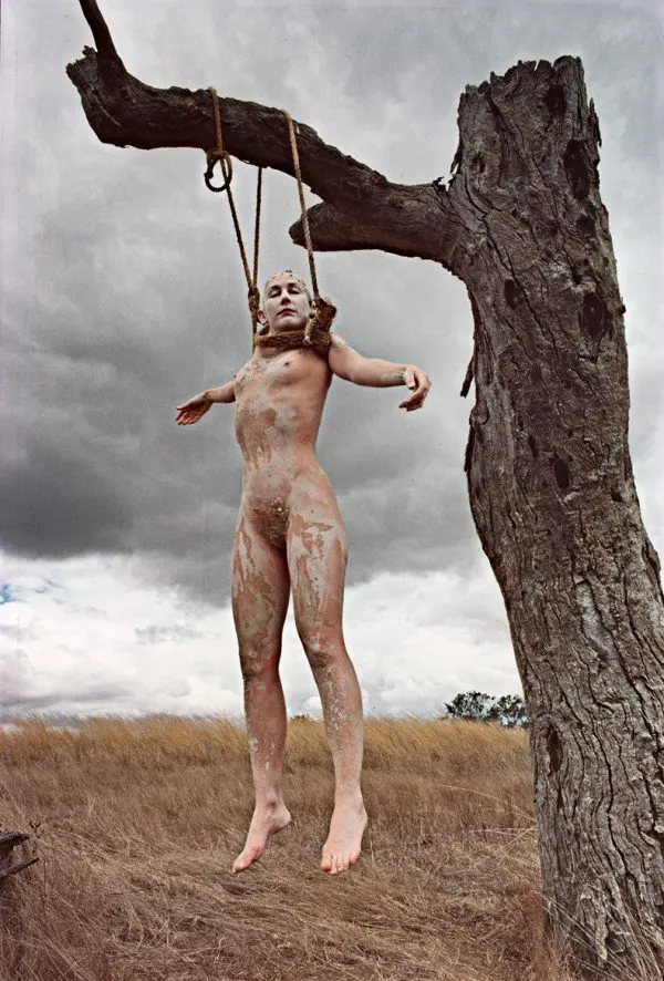 There has been much written about this work that has kept it active within the collective imaginary where the reading as both feminist, environmental and in some instances religious are issues that have active currency now although grounded in the late `70`s. The live performance for the 1979 Third Sydney Biennale, European Dialogue, Gallery of New South Wales and the Paris Biennale, 1980, Musee D`Art Modern. The Bleeding Trees photographic series was exhibited in London at the Institute of Contemporary Art, in Eureka, Artists from Australia 1882, curated by Leon Parisien and Burnese Murphy Bleeding Trees, Pain Melts and Lunch with the Birds photographs have toured within Australia in 1980 and 1989& 91 Namely: Experimental Art Foundation, Adelaide Institute of Modern Art, Brisbane Canberra Contemporary Art Space Australian Centre for Contemporary Art, Melbourne Geelong Art Gallery Bendigo Art Gallery Mildura Arts Centre.