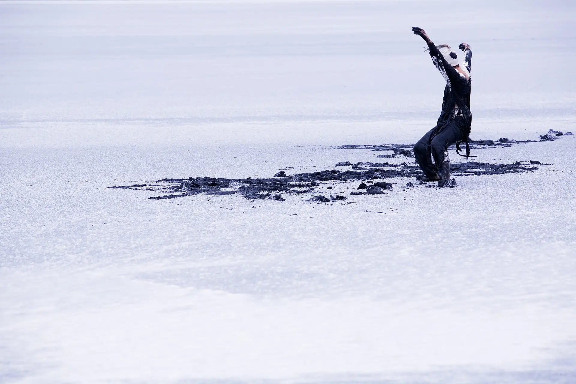 Mitre Lake sits at the foot of Mount Arapelis in Northern Victoria. It is a naturally occurring salt lake where traces of life are temporarily captured on the surface.