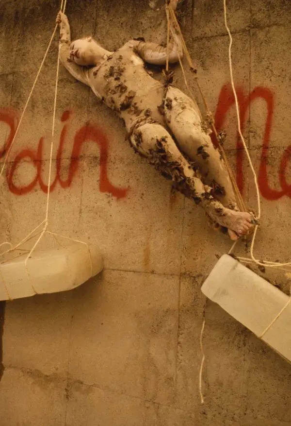 This is an elemental suspension work, created for the camera. It was first exhibited in 1980 at Arts Projects, run by John Nixon. Photograph by Elizabeth Campbell.