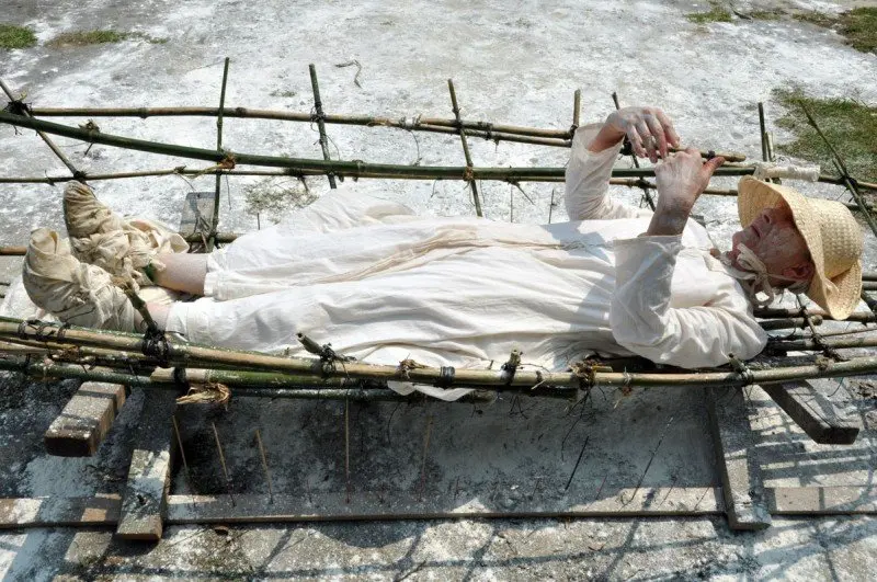 The boat was made from local bamboo and string. I am indebted to Roger and Andy from the Baboon House who helped me gather the materials, make the boat in their backyard and install it on a site at St Paul’s Hill. The entire Festival whose creative director is Tony Yap is an example of the spirit of the collaboration of many being larger than individual parts.