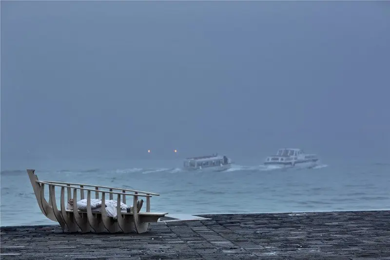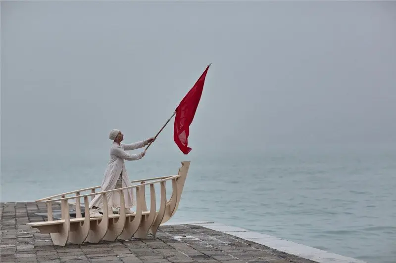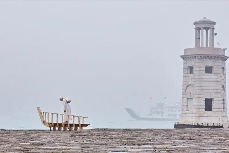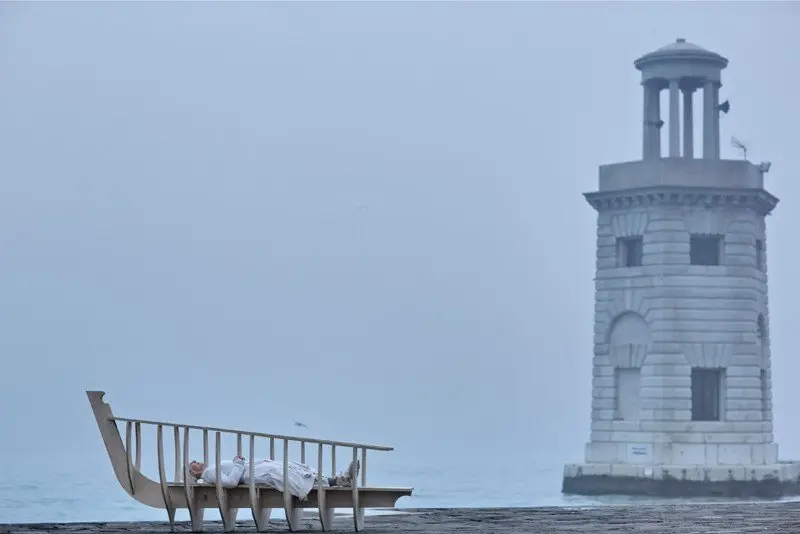 A performance for the camera at the Isola di San Giorgio Maggiore, Venice.